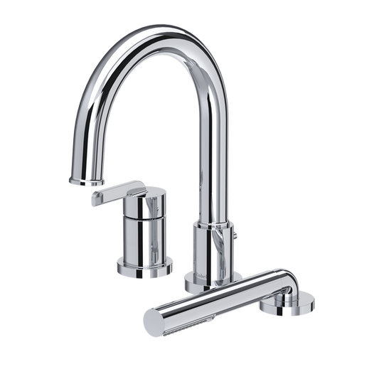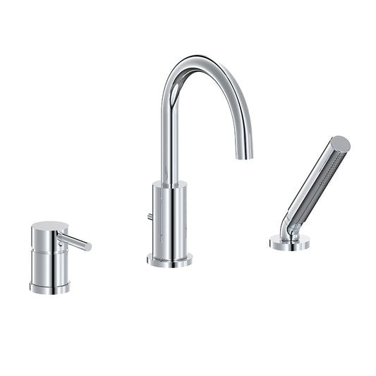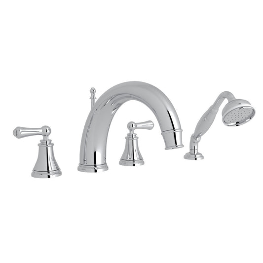 Perrin & Rowe Holborn 4-Hole Deck Mount Tubular C-Spout Bathtub Filler With Handshower, Lever Handle