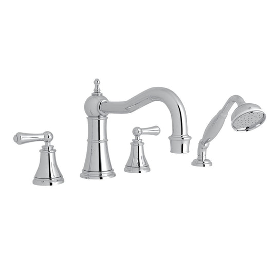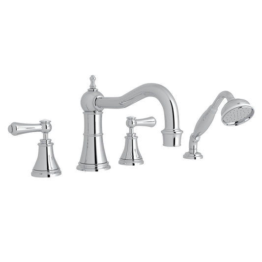 Perrin & Rowe Edwardian 4-Hole Deck Mount Tub Filler With Handshower, Lever Handle