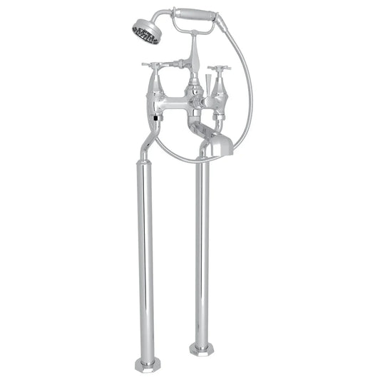 Perrin & Rowe Deco Exposed Floor Mount Tub Filler With Handshower, Cross Handle 19 GPM