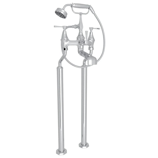 Perrin & Rowe Deco Exposed Floor Mount Tub Filler With Handshower, Metal Lever Handle 19 GPM