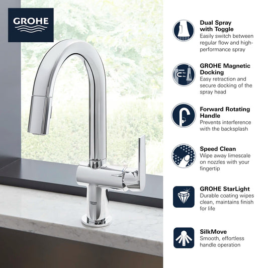 Grohe Defined Single-Handle Pull Down Kitchen Faucet Dual Spray 1.75 gpm - 30377