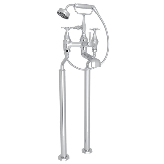 Perrin & Rowe Deco Exposed Floor Mount Tub Filler With Handshower, Cross Handle 19 GPM