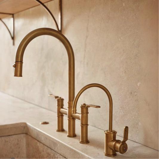 Perrin & Rowe Armstrong Pull-Down Bridge Kitchen Faucet With C-Spout Dual Spray 1.8 GPM
