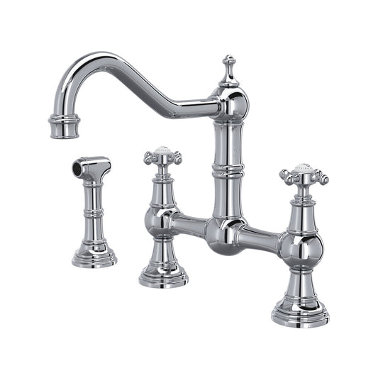 Perrin & Rowe Edwardian Bridge Kitchen Faucet With Sidespray Cross Handle 1.5 GPM
