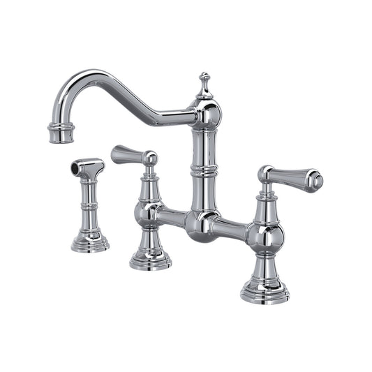 Perrin & Rowe Edwardian Bridge Kitchen Faucet With Sidespray Metal Lever Handle 1.5 GPM
