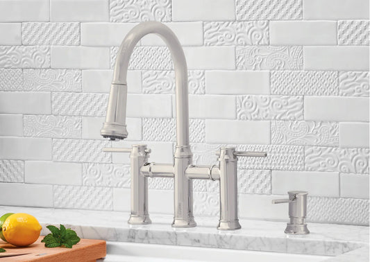 Perrin & Rowe Southbank Pull-Down Bridge Kitchen Faucet Dual Spray 1.8 GPM