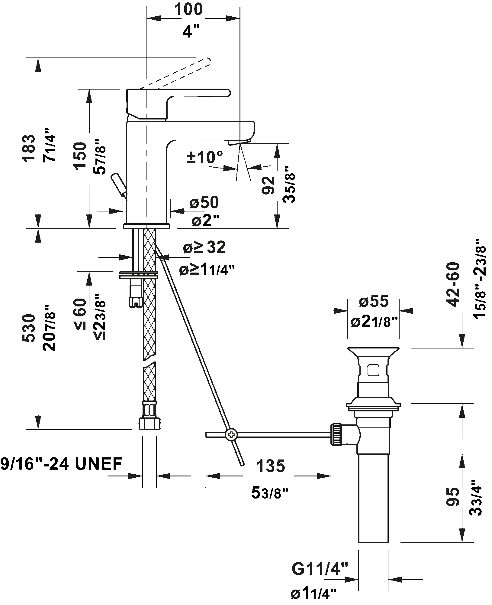 • Pop-up drain included