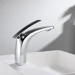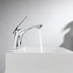 The EVA faucet features sharp edges and a clean, modern look. Its solid brass body and smooth water stream bring both style and function to the bathroom.