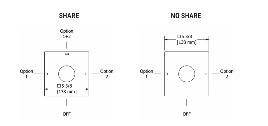 • 4 positions (OFF, 1, 1 and 2, 2) share