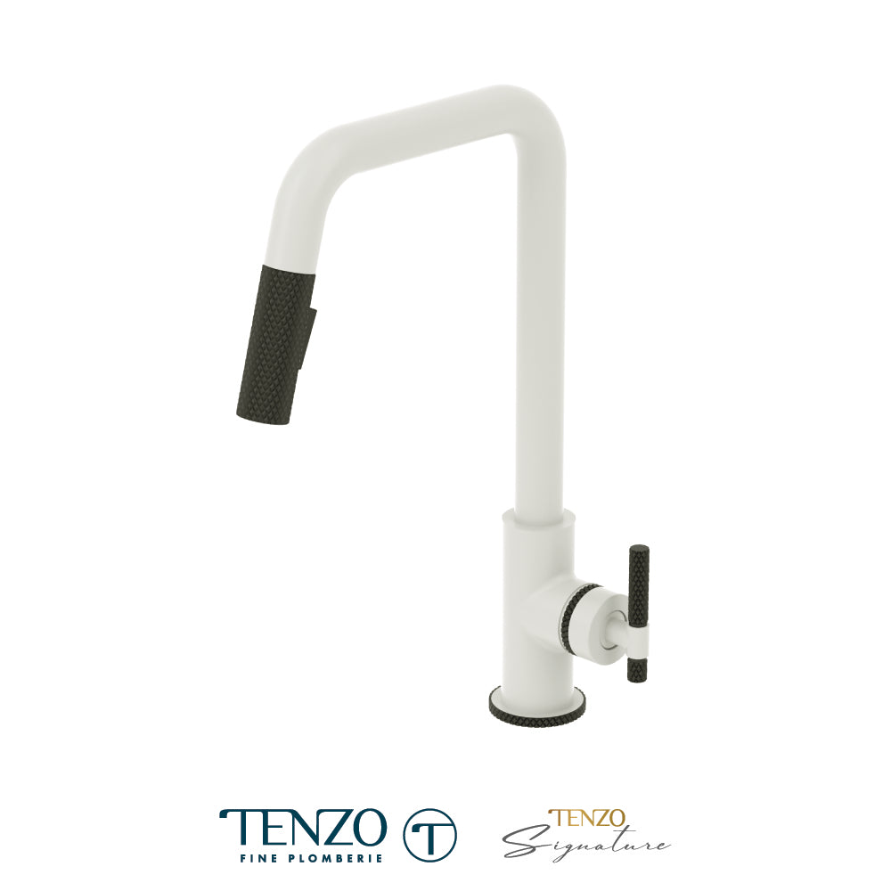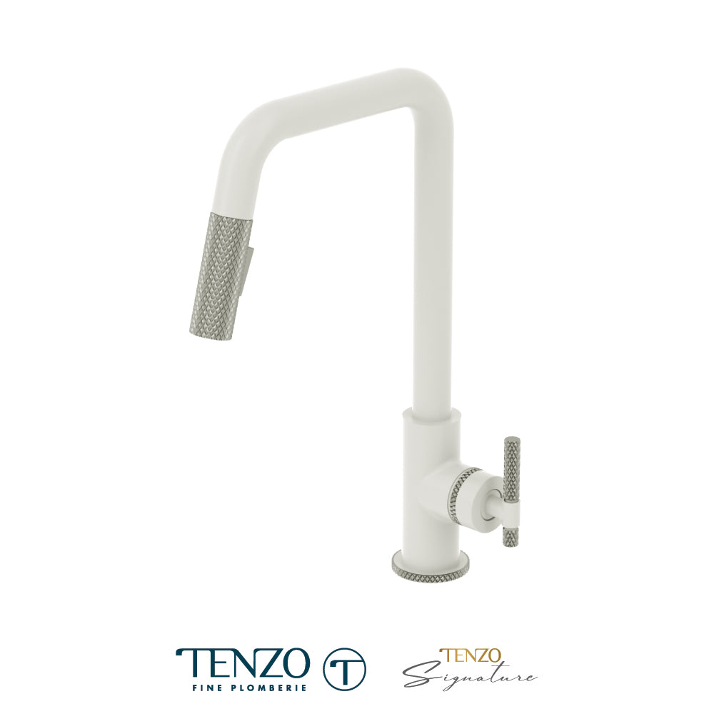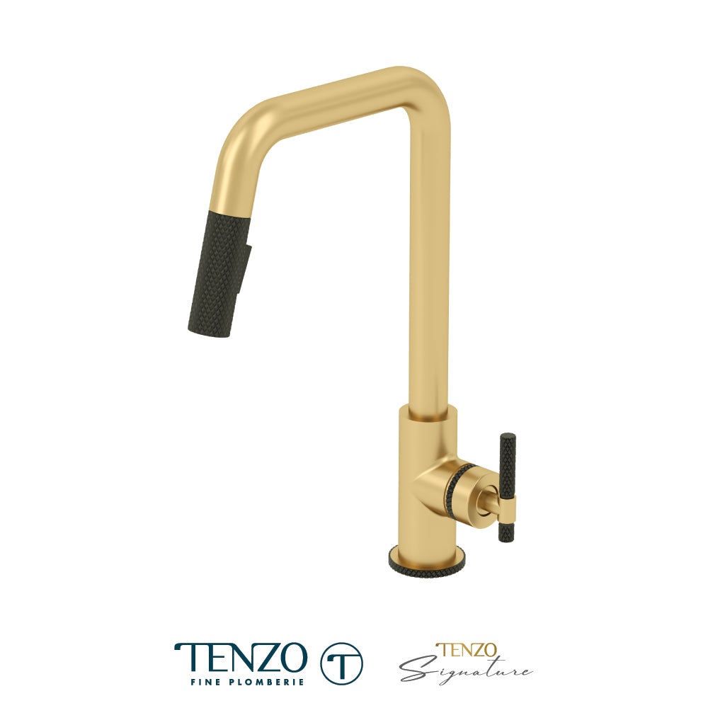 Tenzo Bellacio Single-Handle Pull-Down Kitchen Faucet With U-Spout, 2-Function Spray Head, Larger Knurled Design