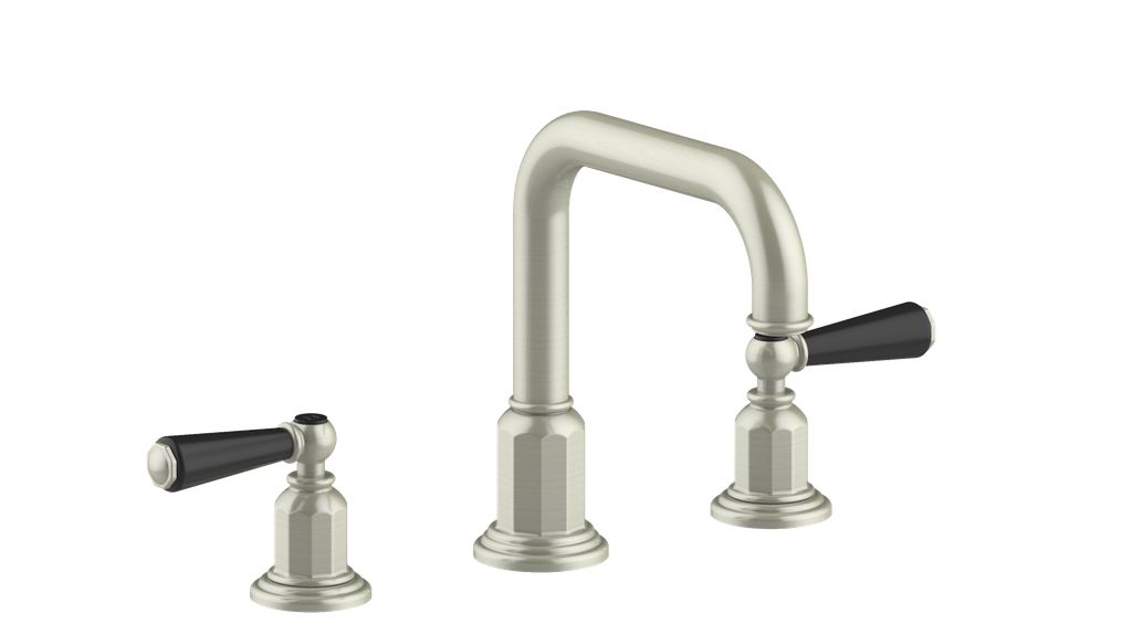 Three-piece widespread lavatory faucet with solid brass construction and adjustable aerator with U-Spout