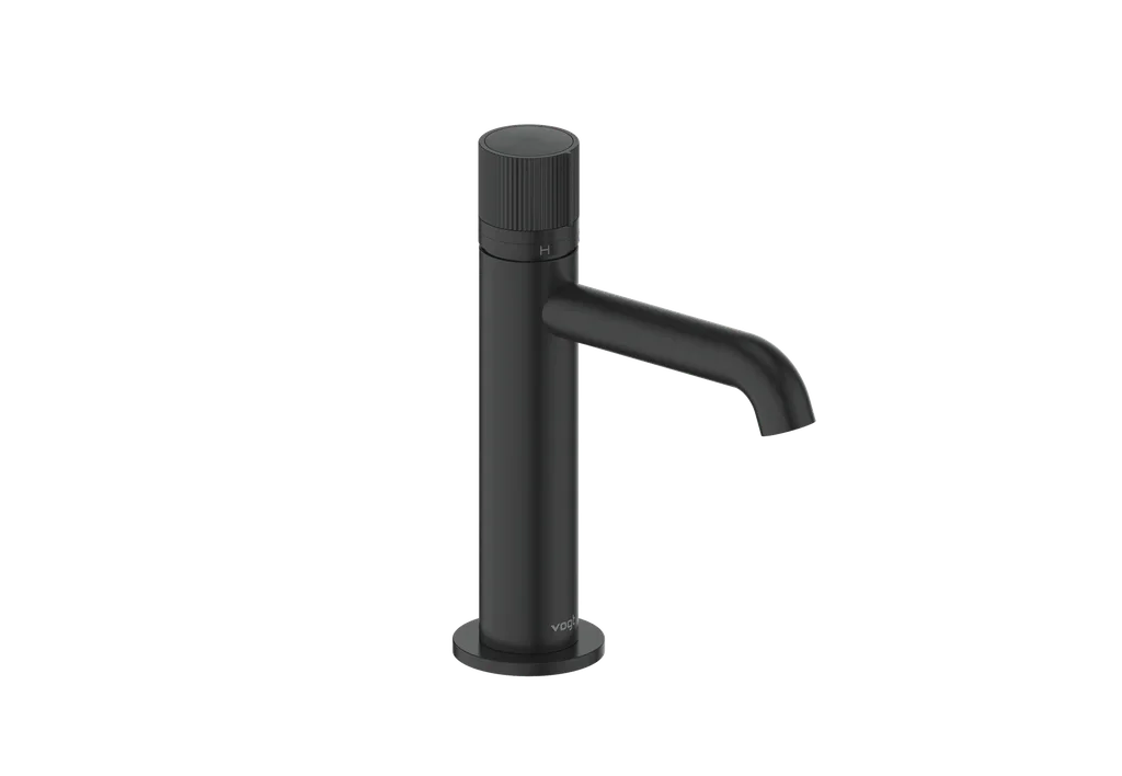 Mond single hole lavatory faucet by Vogt, is designed for modern bathrooms. This single-hole faucet features a convenient knob handle for easy control and is built from solid brass for long-lasting durability. Available in popular finishes like matte black and brushed gold, it’s a great choice for adding style and function to your space.
